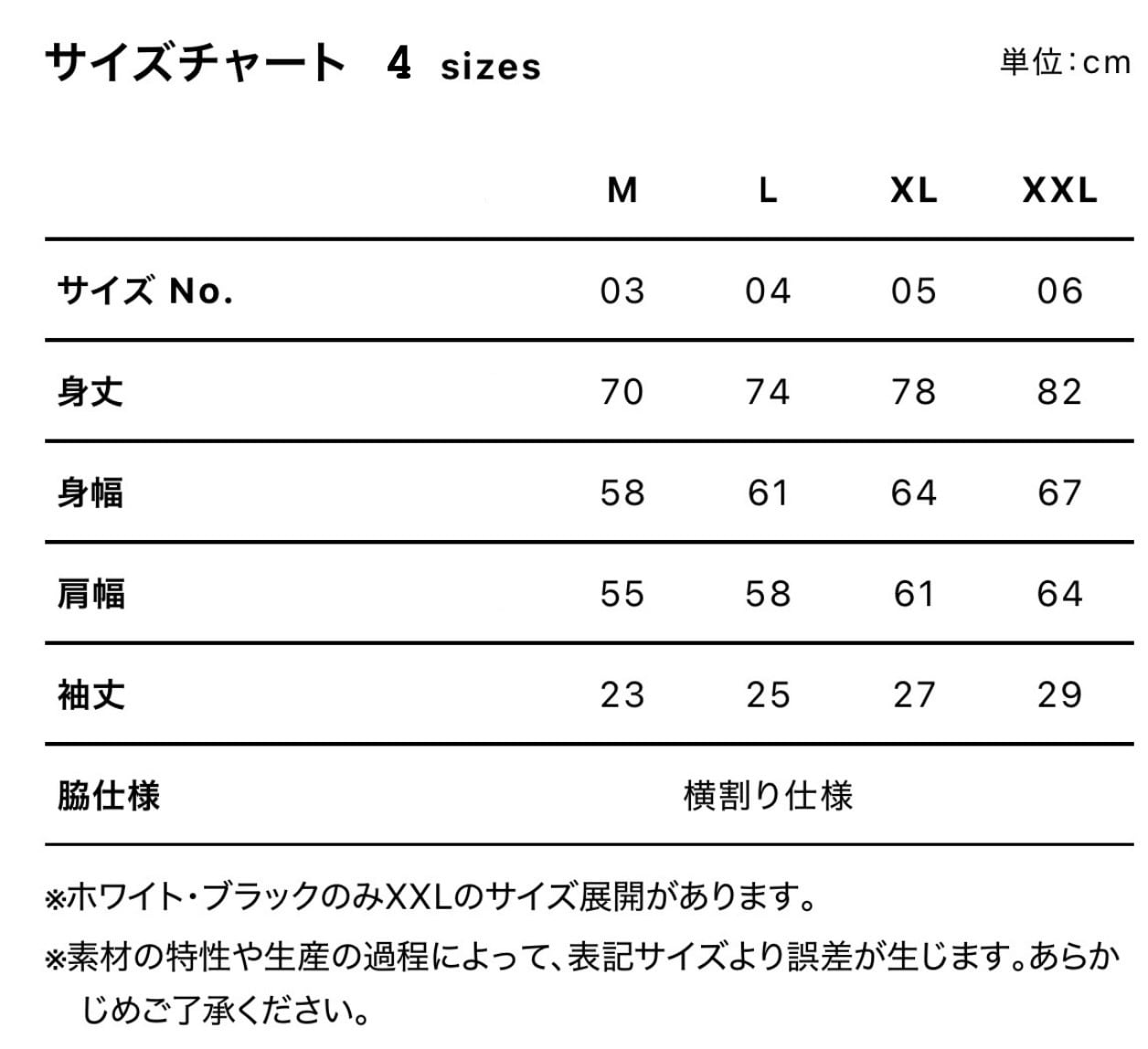ホワイトとブラックの2色展開、オールシーズン対応の着やすい生地感。